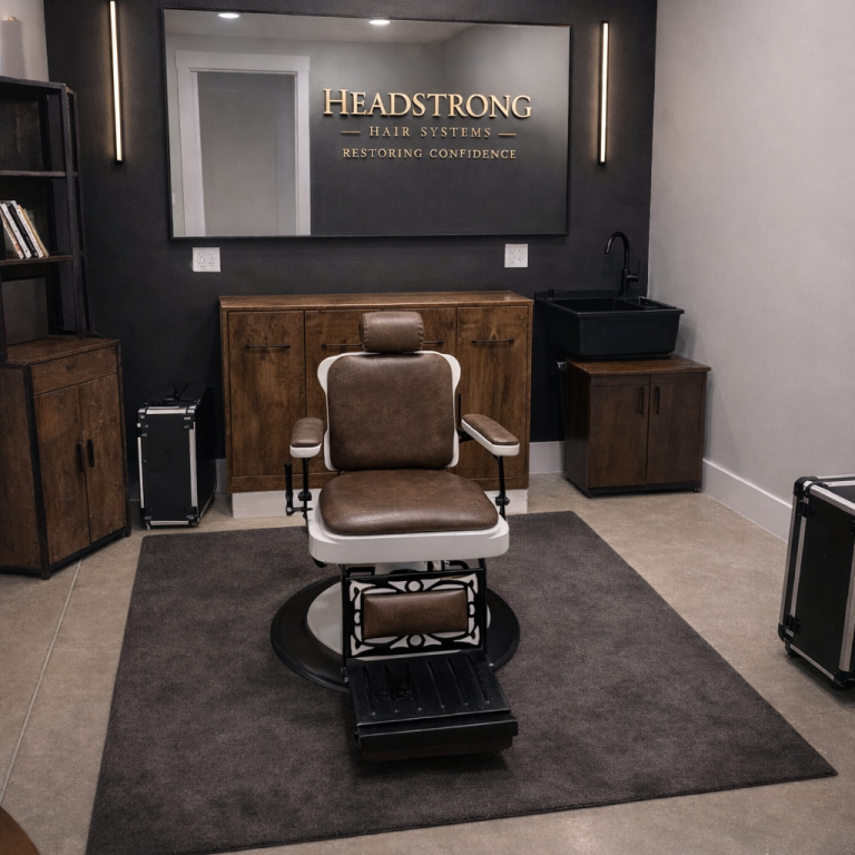 Headstrong Hair Systems at Barbershop17 ATX is a private, appointment-only install studio in Round Rock specializing in non-surgical hair replacement for men. Master Barber Eric Lewis delivers fully customized, natural-looking hair systems with precision installation, seamless blending, and complete discretion.